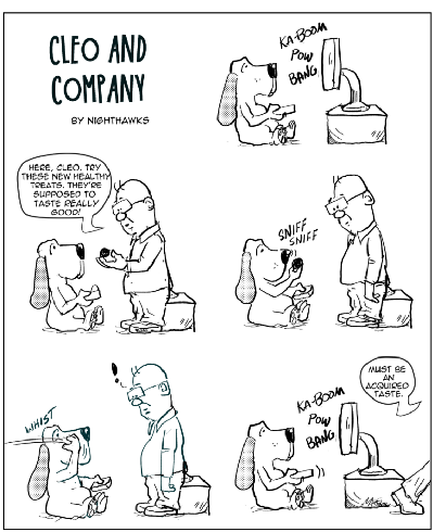 I just wanted to comment about the first Black&White Cleo strip that, at least, I can recall (other than the extended Sam Spade “film noir” series). I rather liked the simplicity of today’s strip. Remember when the only color strips were on Sunday? And, during the week, everything was in B&W??