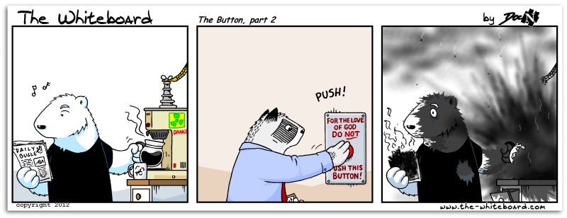 There’s a few of them, but I won’t spam the place. We’ll start off with the first one that is two parts. For those who have no idea who the characters are, the racoon is Roger, and the polar bear is Doc. The webcomic is ‘The Whiteboard’.