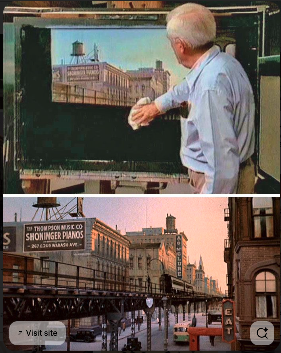 Yes…. I was coincidentally on my way back here to say it’s by matte painter Albert Whitlock, from “The Sting.”