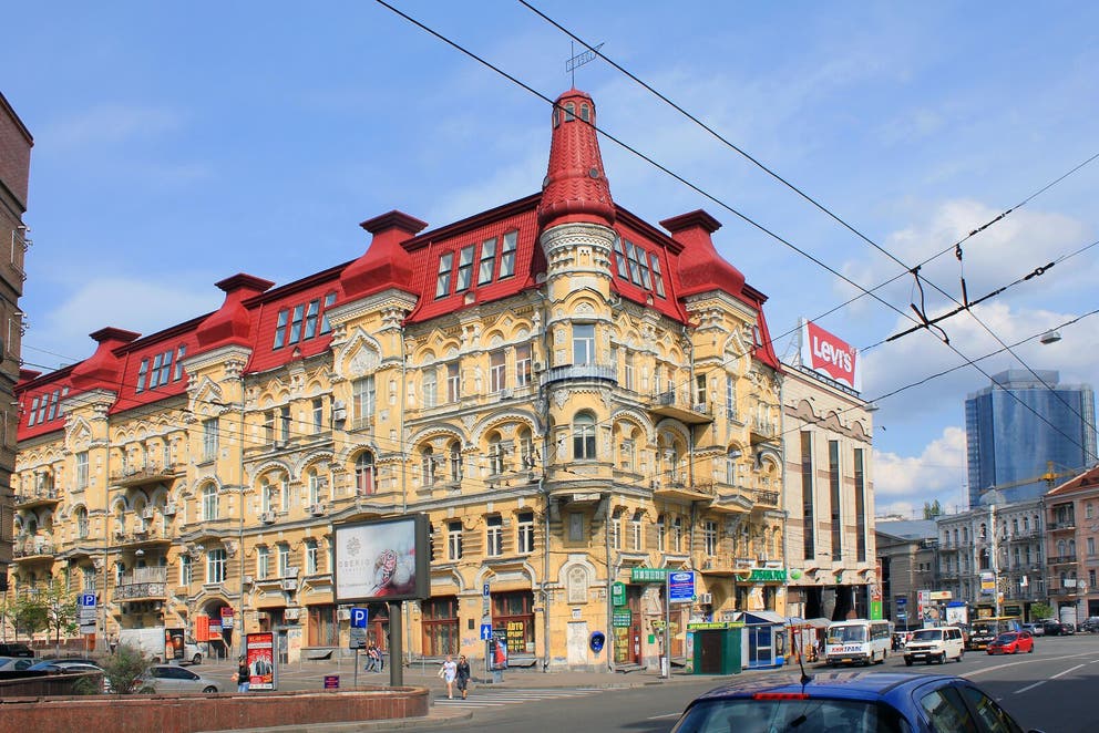 It’s actually a beautiful old apartment building in Kiev, or rather Kyiv, Ukraine, in spite of stores and commercial spaces on the ground floor.