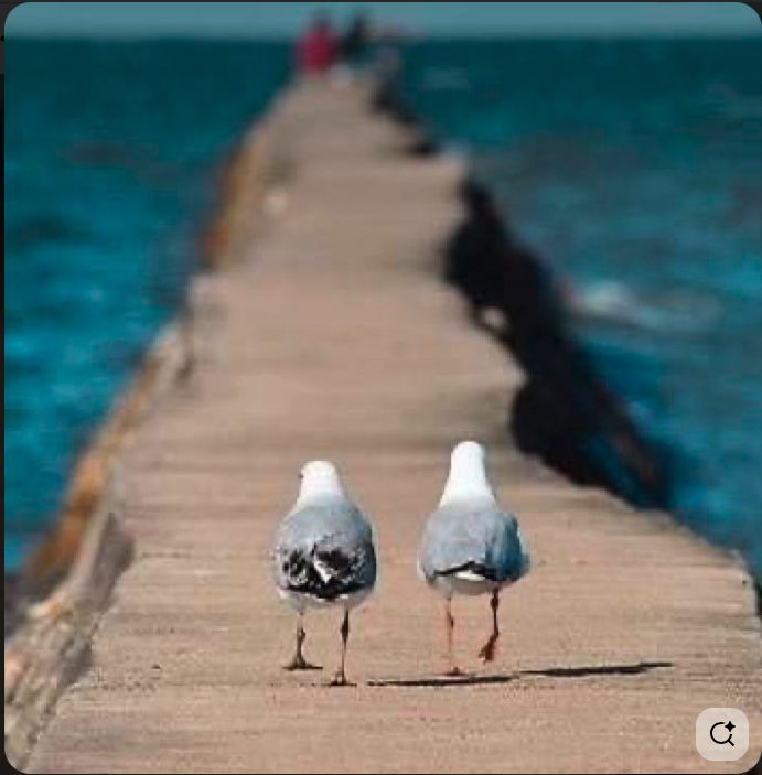“Lovely day for a stroll, eh, Mabel? Shall we stop for some fish?”