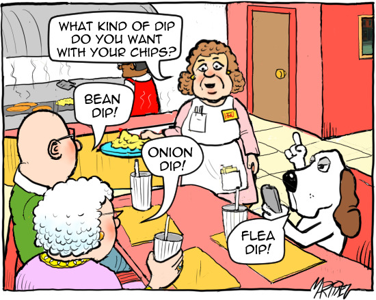 So have some nice onion dip, and… I know it’s embarrassing, but… talk to your vet about the fleas.