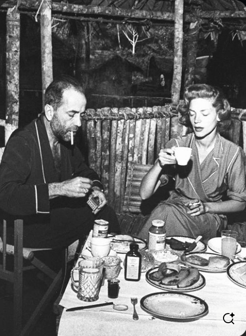 on the set of The African Queen, where Lauren had accompanied her husband on location, though she’s not in the film.