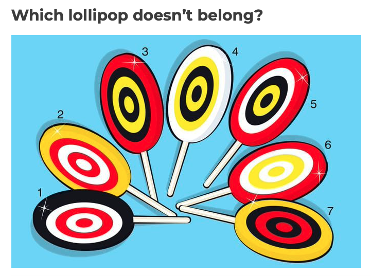 If we start numbering with the center dot, and call it Ring 1, and the outer ring is Ring 5, on al the other lollipops, Rings 2 and 4 match.