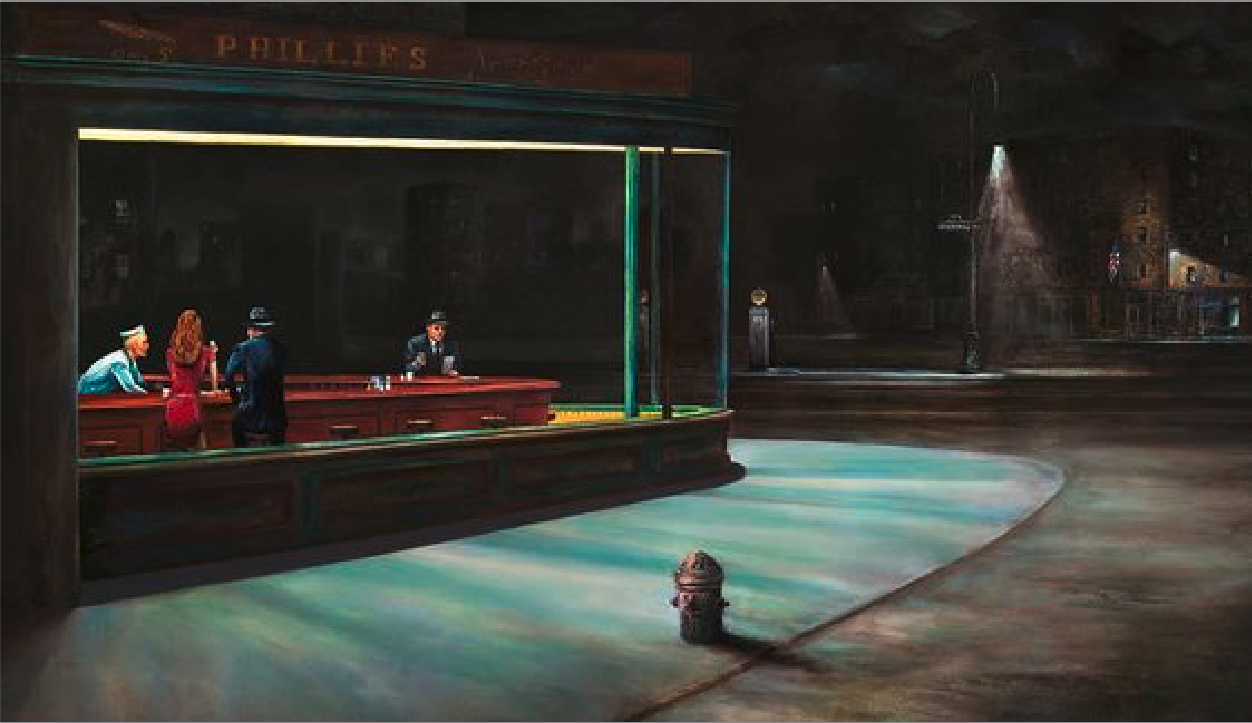 If this artist is going through all the trouble of adding a hydrant where, as you say, there wasn’t one originally. S/he should have completed the scene with a dog peeing on it.