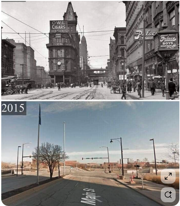 But the destruction didn’t slowly happen for 100 years… It was a massive urban renewal project (some renewal!) when they tore down all those buildings to make room for the highway.