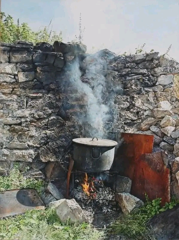 ‘Shelter from Wind’ (2020) – Atanas Matsoureff (Bulgarian Artist, born 1975) – Watercolour, 76 × 57 cm (30 x 22.5 in).