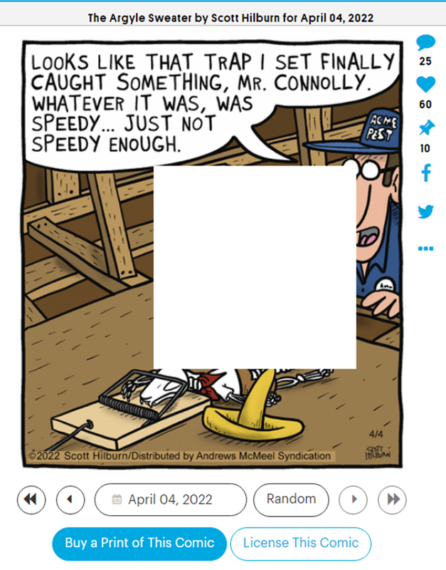 Is anyone else getting this annoying white square popping up randomly in GoComics? It does eventually go away, but sometimes it shows up, as here, in a really annoying spot.