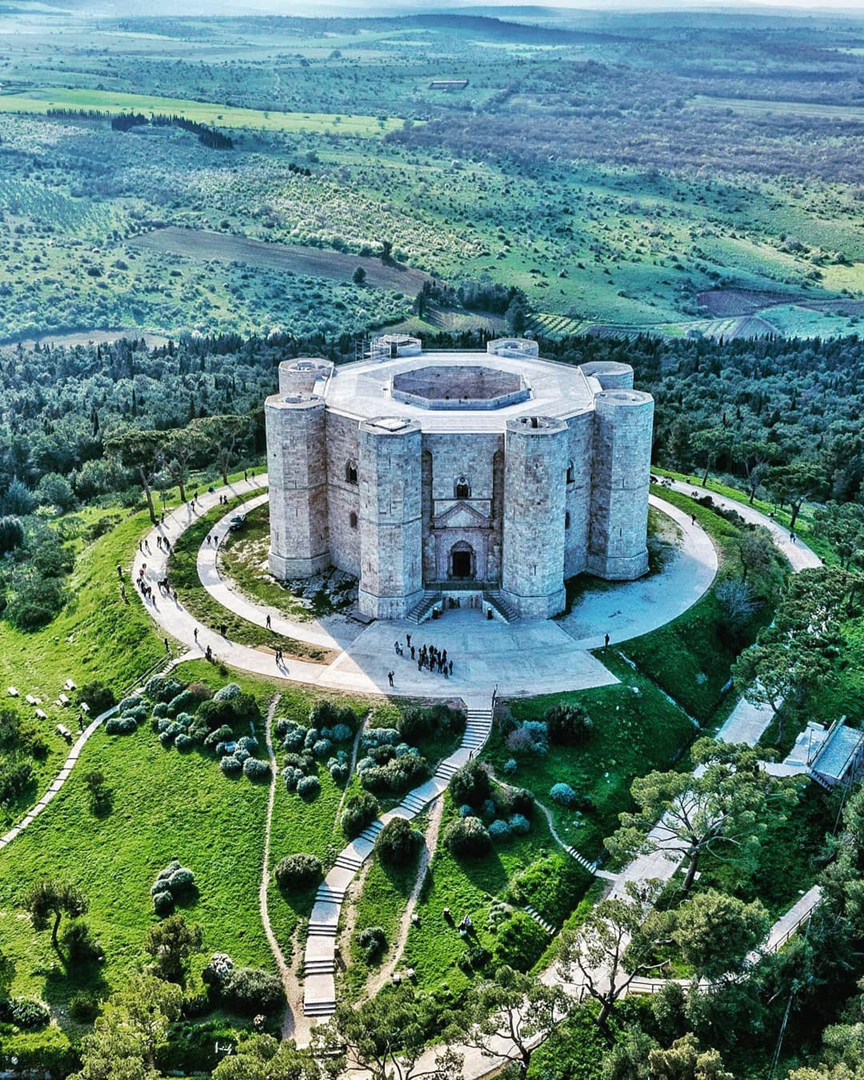 Castel del Monte, symmetrical octagonal castle built in the 1240’s in Apulia, Italy.