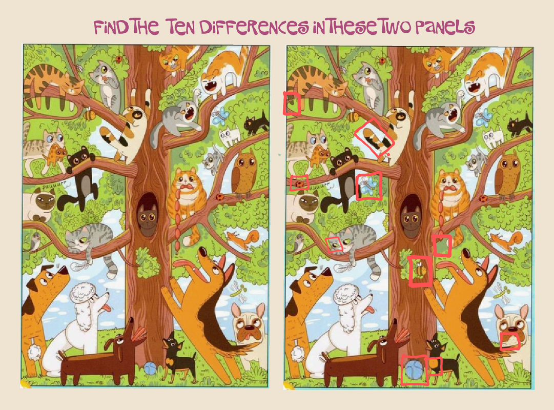 I believe I’ve located all ten differences today. I bet you thought you would trip me up with the old ten instead of nine dodge, but hah! This time, I was ready for you!