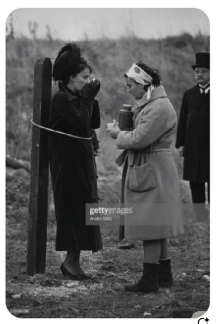 It’s Margaretha Geertruida MacLeod, better known as Mata Hari, having a last glass of wine, moments before being executed, in October, 1917.