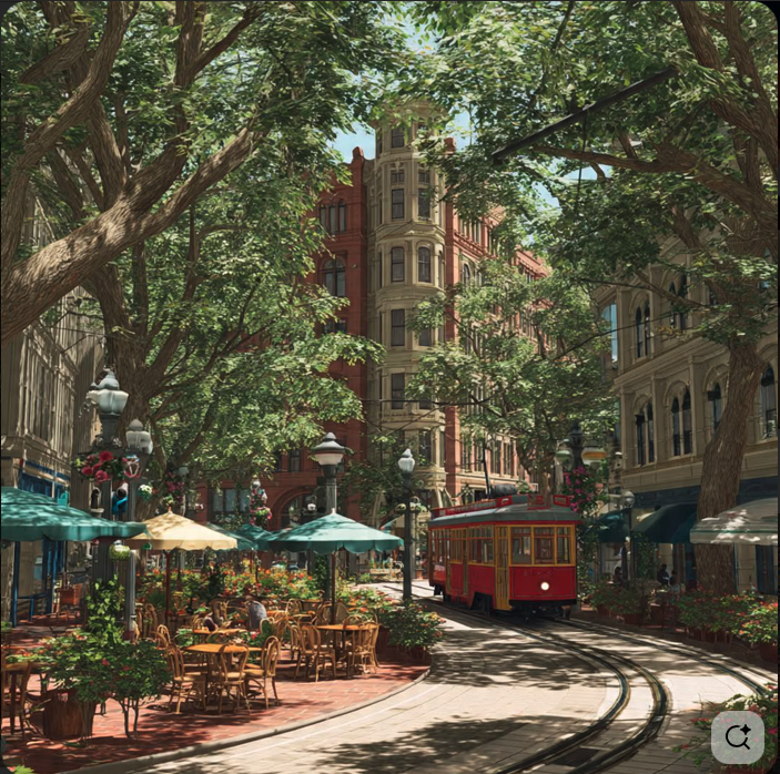 It looks real… kind of… but there are no signs anywhere, no number or destination on the streetcar. People are getting wise to the way AI garbles words, and leaving them out.