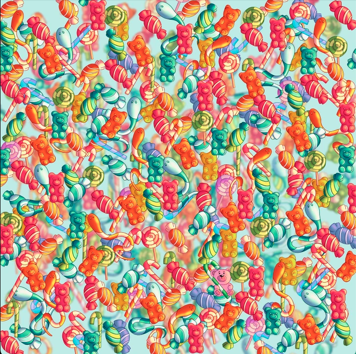 I see it… but may I say that I don’t really like the idea of finding a plush bear in a pile of sticky and gummy candy?