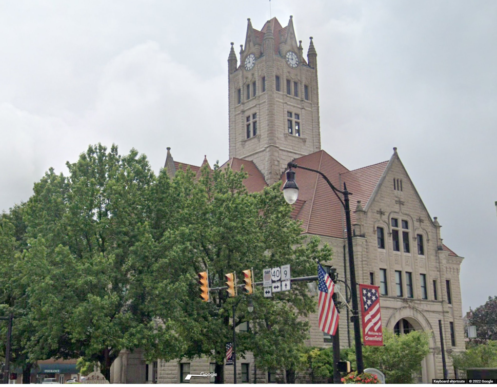 The courthouse is in Greenfield, Indiana ,the largest city in the county and the county seat. It was about four blocks from where I lived there.