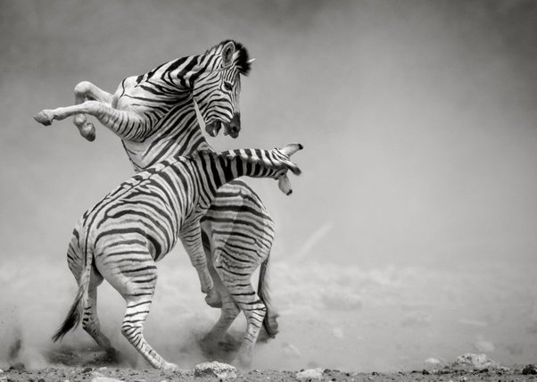He writes, “Two male zebras emerged from the dust, landing blows at each other with their hooves and heads.”