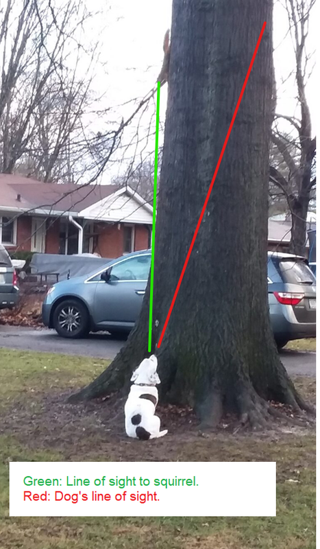 Yeah… I think the dog is either looking right at the squirrel, or trying to see where it went.