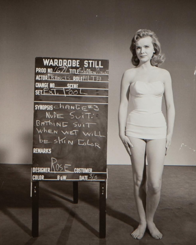 Actress Anne Francis during wardrobe testing for Forbidden Planet (1956)