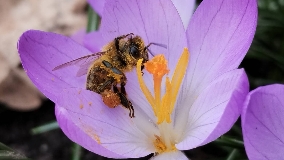 “Whoa! Hasn’t she got quite a load in her pollen baskets already?”