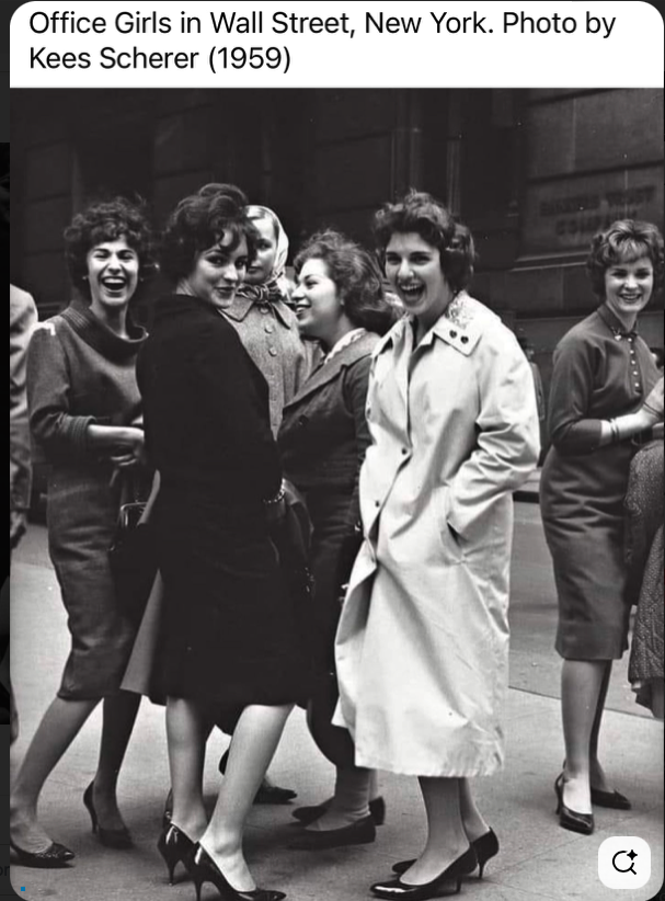They appear to be having a great time (in spite of the spike heels). Future mothers of our country, and hopefully very happy lives ahead of them. Probably some Frank Sinatra (and maybe Elvis Presley) fans among them.