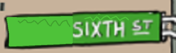 I also used the eyedropper tool to pick up the color from the sign on the left, and tried to scribble with it on the sign on the right….
