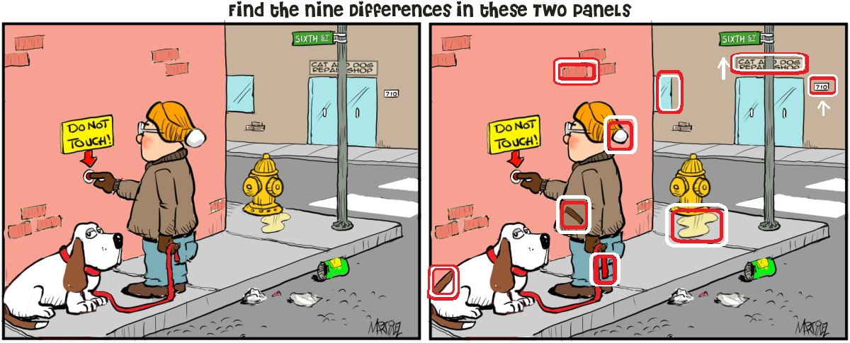 I found seven last night, but I didn’t find the other two until this afternoon, and they were obvious once I noticed them. Sheesh!