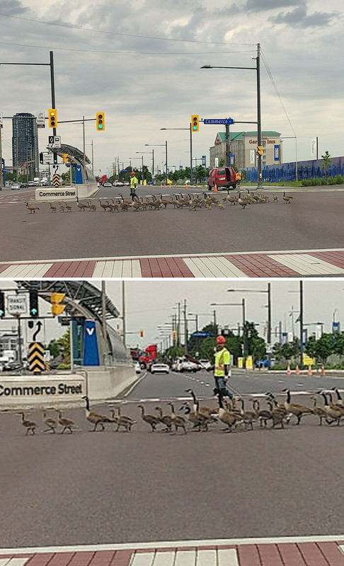 In some seasons, traffic is often stopped in both directions, not by a crossing guard or policeman, but just by the good natured and hopefully careful drivers who notice a small feathered family trying to get to the other side.