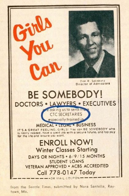 I thought somebody waaay back then was actually saying that us “girls” could be doctors, lawyers, or executives.