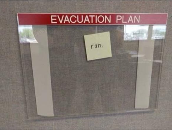 Heh…I had to draw up floor plans for the manufacturing facility where I worked…with large red arrows for emergency evacuation and meet-up locations. It was never this simple…