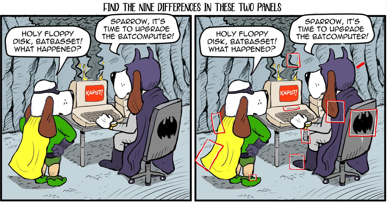 They may have found the solution to that problem, but as you see, there was also the problem of finding differences between these two panels. Can’t expect our heroes to spend time on that puzzle… It was our job!