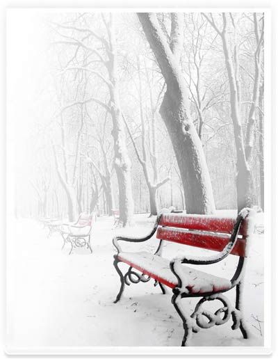 “Red bench in the snow” By: Jaroslaw Grudzinski