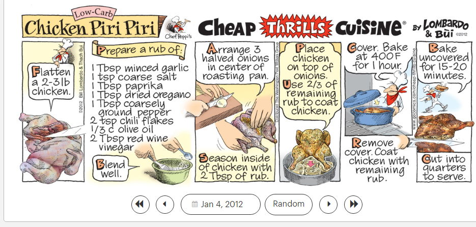 1. ‘Blue Velvet,’ 2. ‘Celebration,’ 3. ‘Chirpy Chirpy Cheep Cheep,’ and 4. ‘Cinnamon Girl,’ and the ‘Cheap Thrills Cuisine’ recipe 5. ‘Chicken Piri Piri (low carb).’