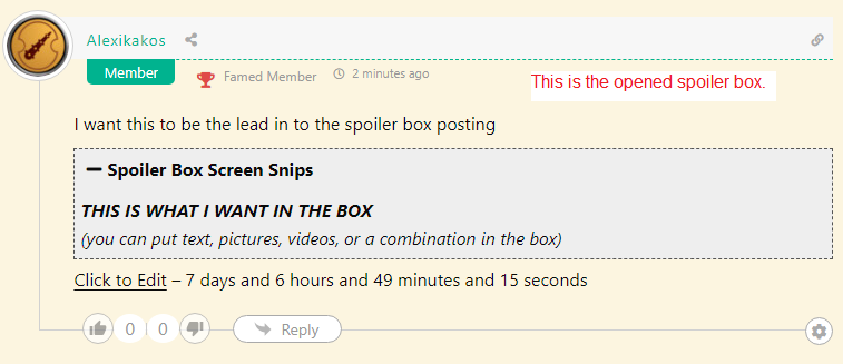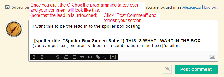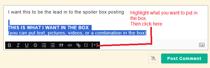 I’ve put 7 pictures with explanations in the spoiler box below on how to set up a spoiler box. It covers, to the best of my ability, all the steps necessary.