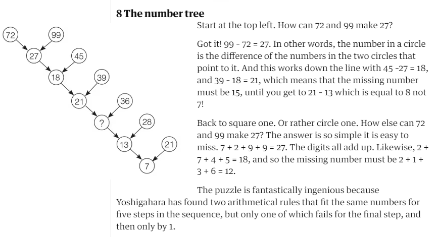 The number in the top right-hand circle, the one with the left-pointing arrow, minus the top left-hand circle gives the answer in the circle they’re both pointing at.