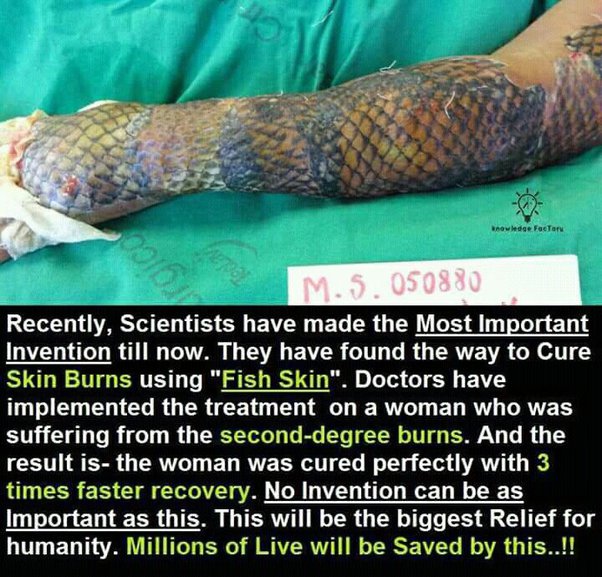 Fish skin has been used for a good part of this century in burn and other wound care… at first experimentally, but it’s more mainstream by now, especially in Brazil, and in countries where it’s a much cheaper alternative to conventional treatment.