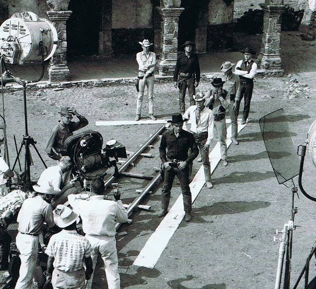 Yul Brynner, in front, then I think Steve McQueen, and in the very back, Robert Vaughn. Pretty sure that’s James Coburn, rear left, standing tall in the white hat.