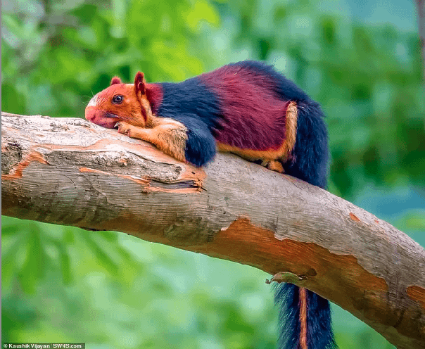The Indian, or Malabar, Giant Squirrel, weighing about 4 pounds, is naturally that combination of colors.