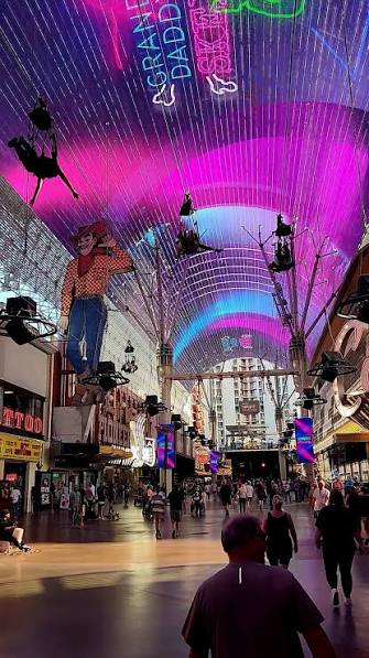I don’t know the city well enough to say whether the blocks above are included, but probably. A several block stretch of Fremont is now The Fremont Street Experience… a pedestrian mall, with casinos, stores, a canopy and a light show, and live music….