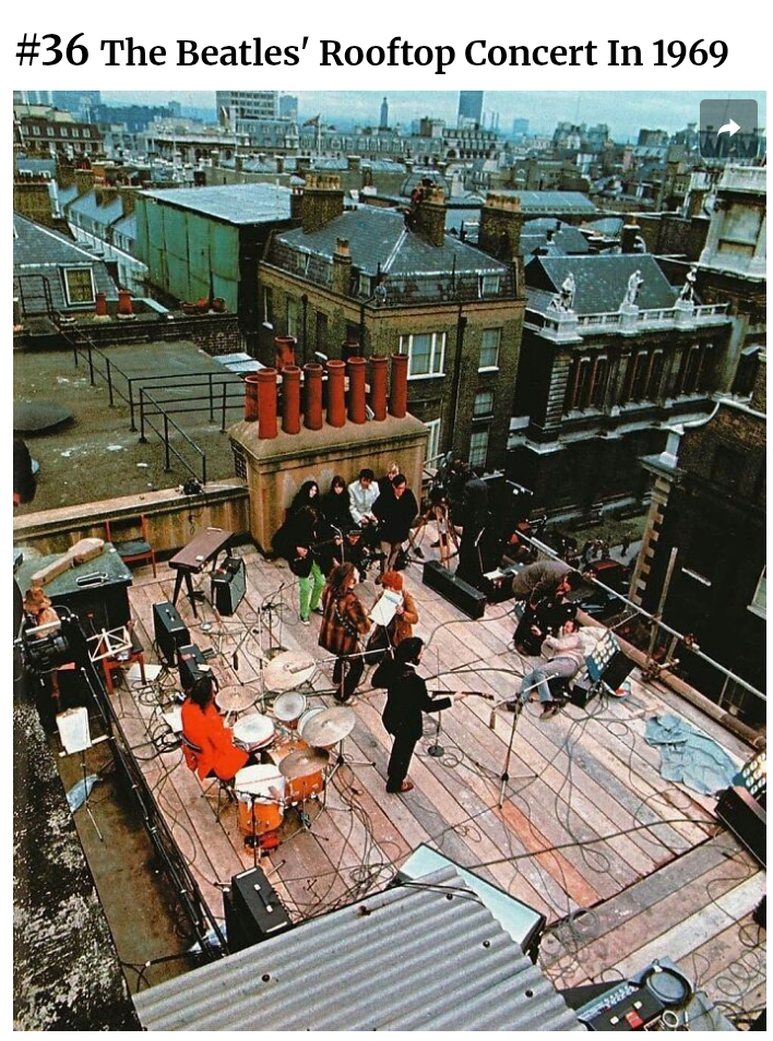 After about 40 minutes the Metropolitan Police showed up and ordered them to turn down the volume cos they’d had noise complaints! Noise complaints about a free Beatles concert!