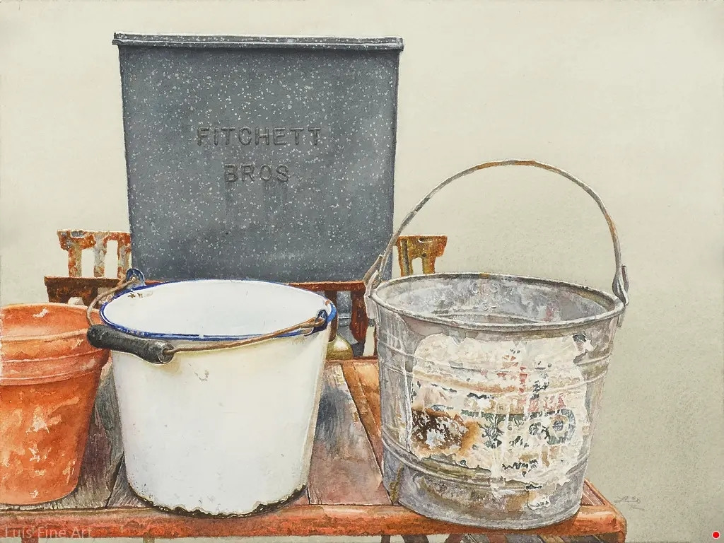 ‘Fitchett Bros’, – Luis F. Perez (contemporary Colombian-American artist). Watercolour, 16 x 12 in (40.6 x 30.5 cm).