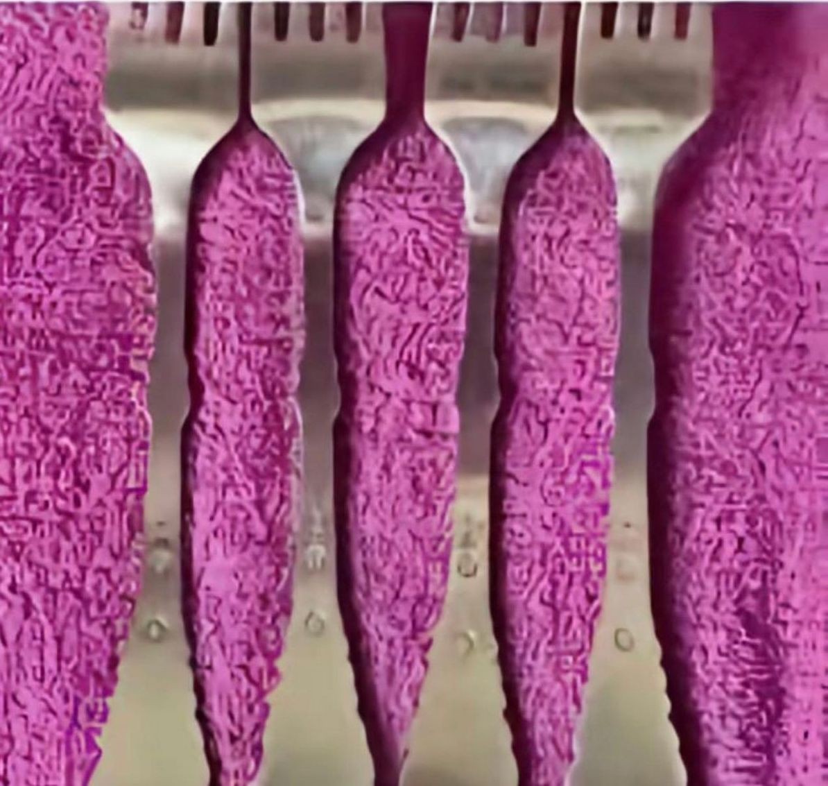 Our eyes want to automatically turn them the other way, so the shadows on the edges of the metal look like they’re on the towel, making it look 3D, when it’s actually flat… It’s the forks that are 3D.