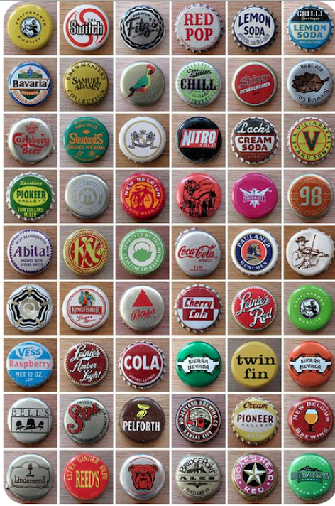 Sierra Nevada, New Belgium, Sam Adams… those are modern brands. Others look like modern caps for what night be old brands, like Bass Ale, Paulaner and Carlsberg.