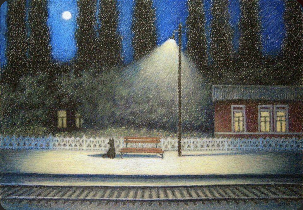 Waiting patiently for master or mistress to return by train.