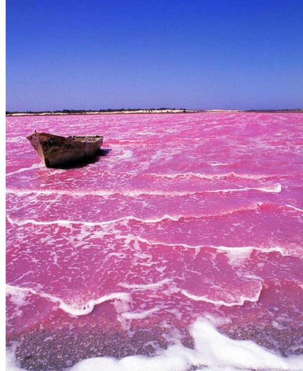 Lake Retba, a naturally pink lake in Senegal.