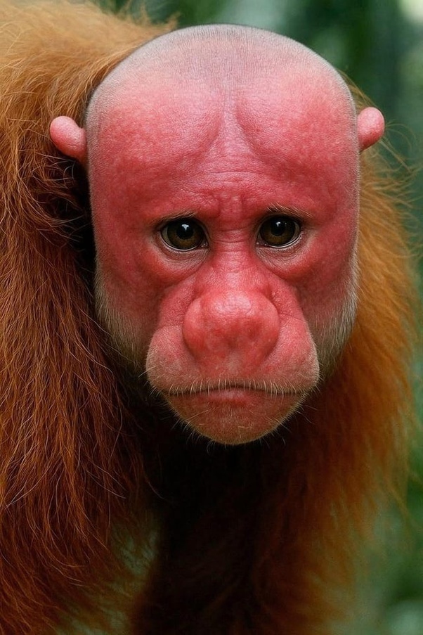 It’s a Bald Uakari, sometimes called the Red-faced Monkey, that lives in flooded forests of the Amazon basin.