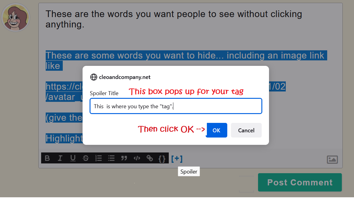 The second thank-you is for your answer to my question about Postimage below. I think I’ll take a chance with the site and see if it will do what I want to do with it (I corrected the