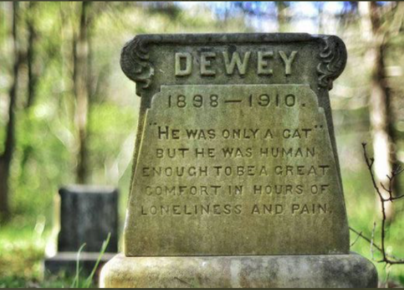 I googled it, and I can’t find a book about a cat named Dewey who died in 1910. There plenty of mention of this gravestone, but not a book about the cat.