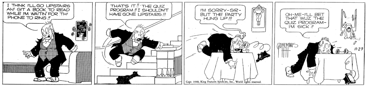One of the longest running strips ever… started well before WWI, it was ancient when I read it as a child, but my father loved it, and used to read it aloud to us.