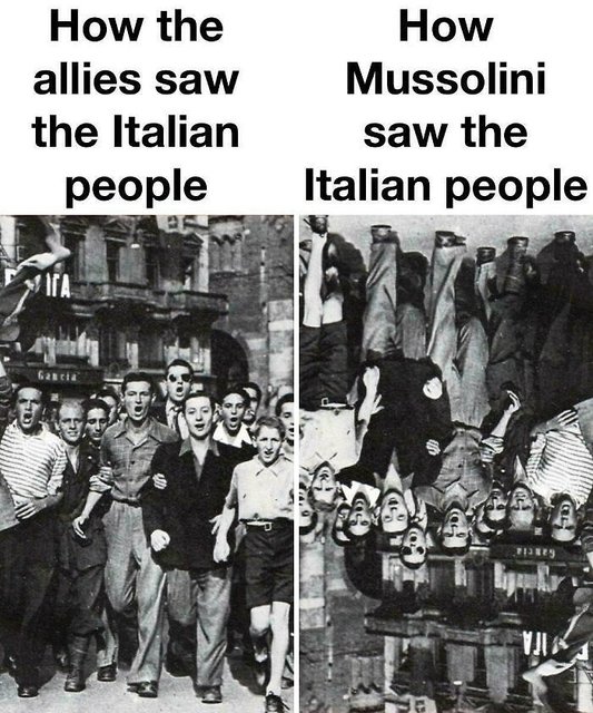 Mussolini was hang after his death, so this meme is pointless and simply shows bad taste, joking about death and corpse vilification. We should be worried about our current alive and kicking dictator, not a dead one