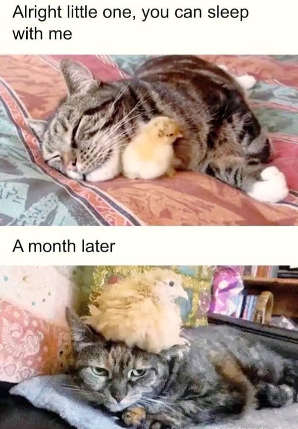 I suppose it could be a month old chick, but they’re usually more fledged out. Chickens grow remarkably fast. Or maybe it’s not really a whole month later.
