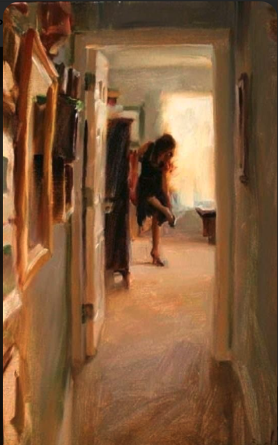 I was leisurely scrolling down the picture, enjoying her anticipation of a night out. Then I came to your comment and guffawed at the total change of feel.